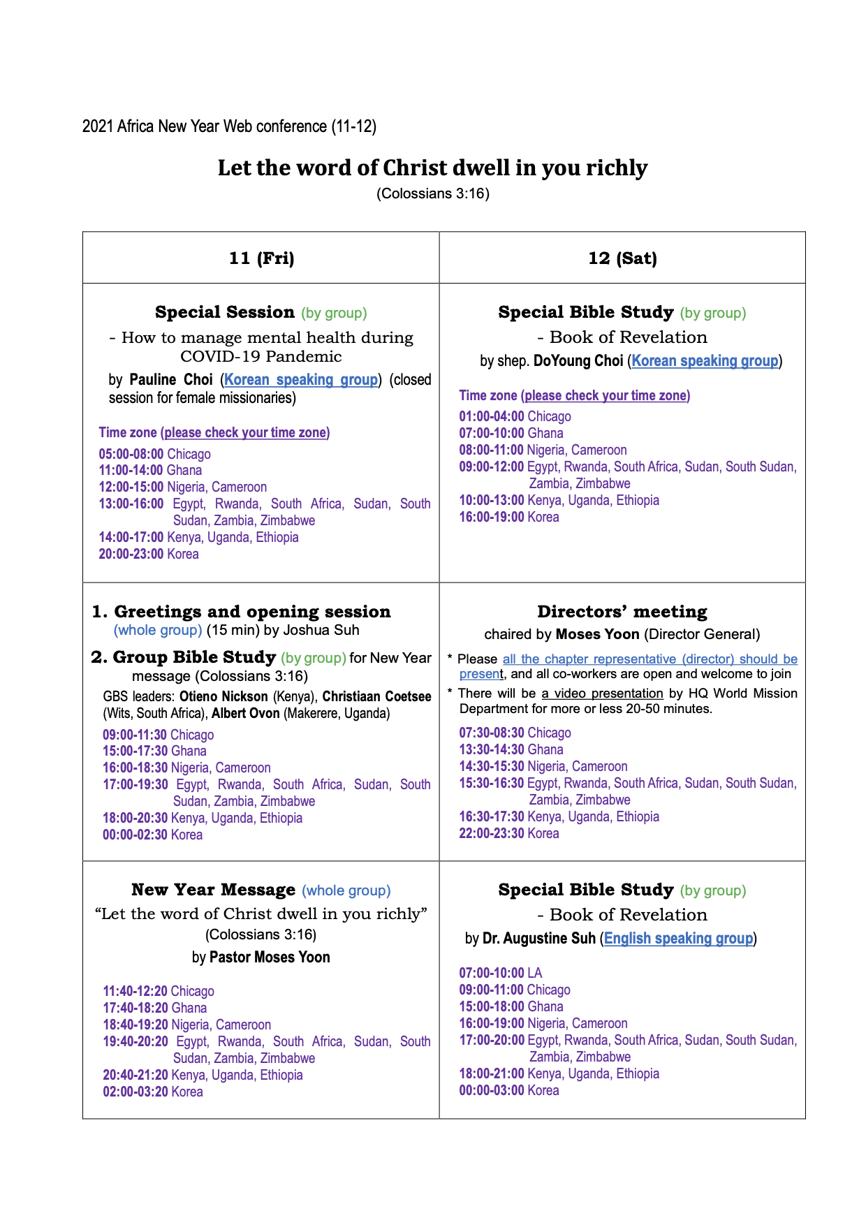 (Africa/Updated Program) 2021 New Year Conference from December 11 to 12, 2020
