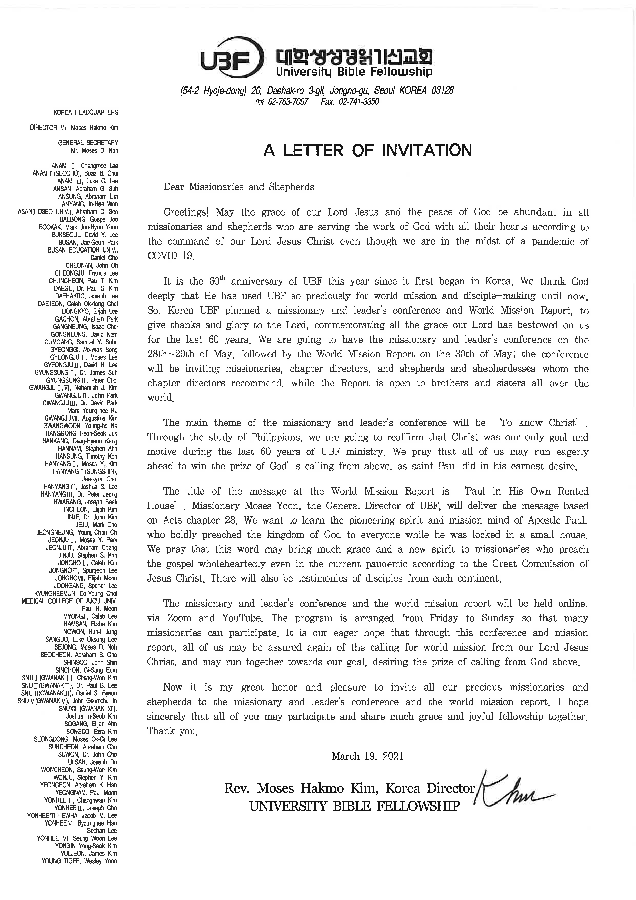 UBF 60TH ANNIVERSARY ONLINE WORLD MISSION REPORT AND MISSIONARIES & LEADERS CONFERENCE