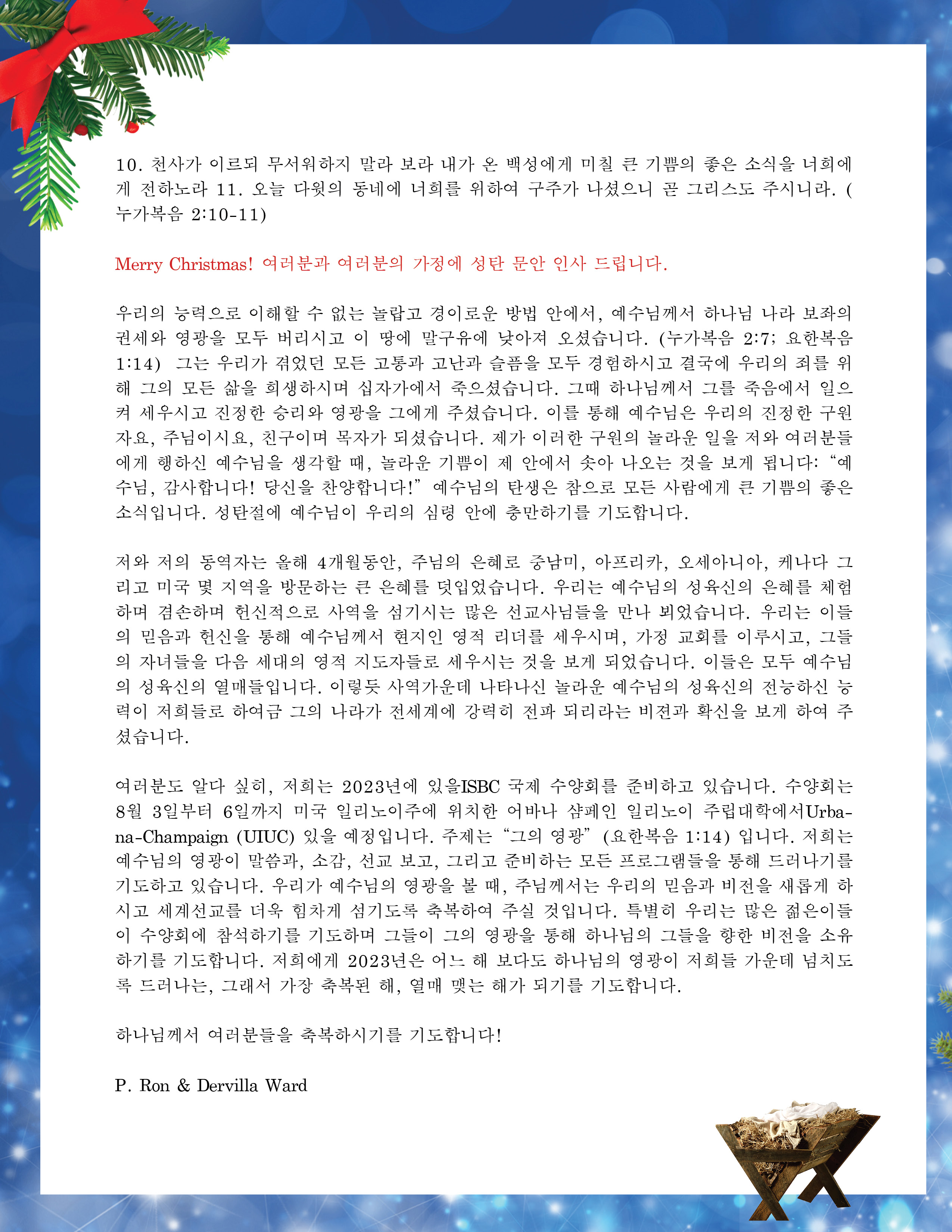 Merry Christmas! 여러분과 여러분의 가정에 성탄 문안 인사 드립니다.